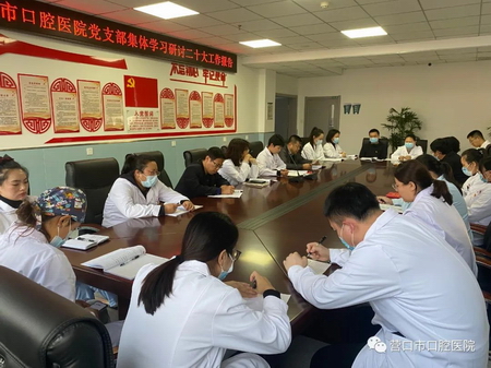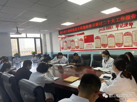 10月21日下午,市口腔医院召开党员大会,集体学习研讨二十大工作报告,院领导班子及全体党员参加此会议。